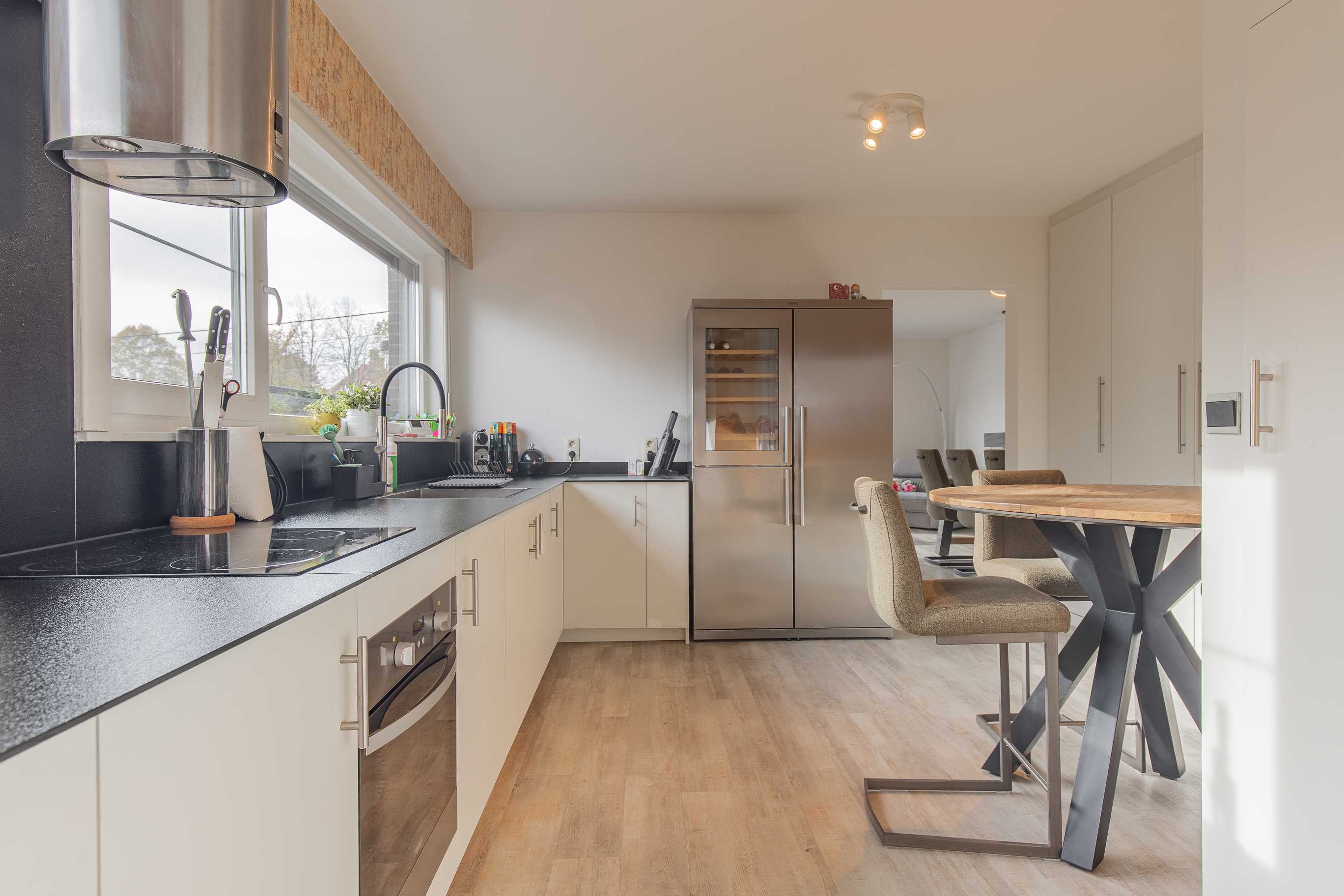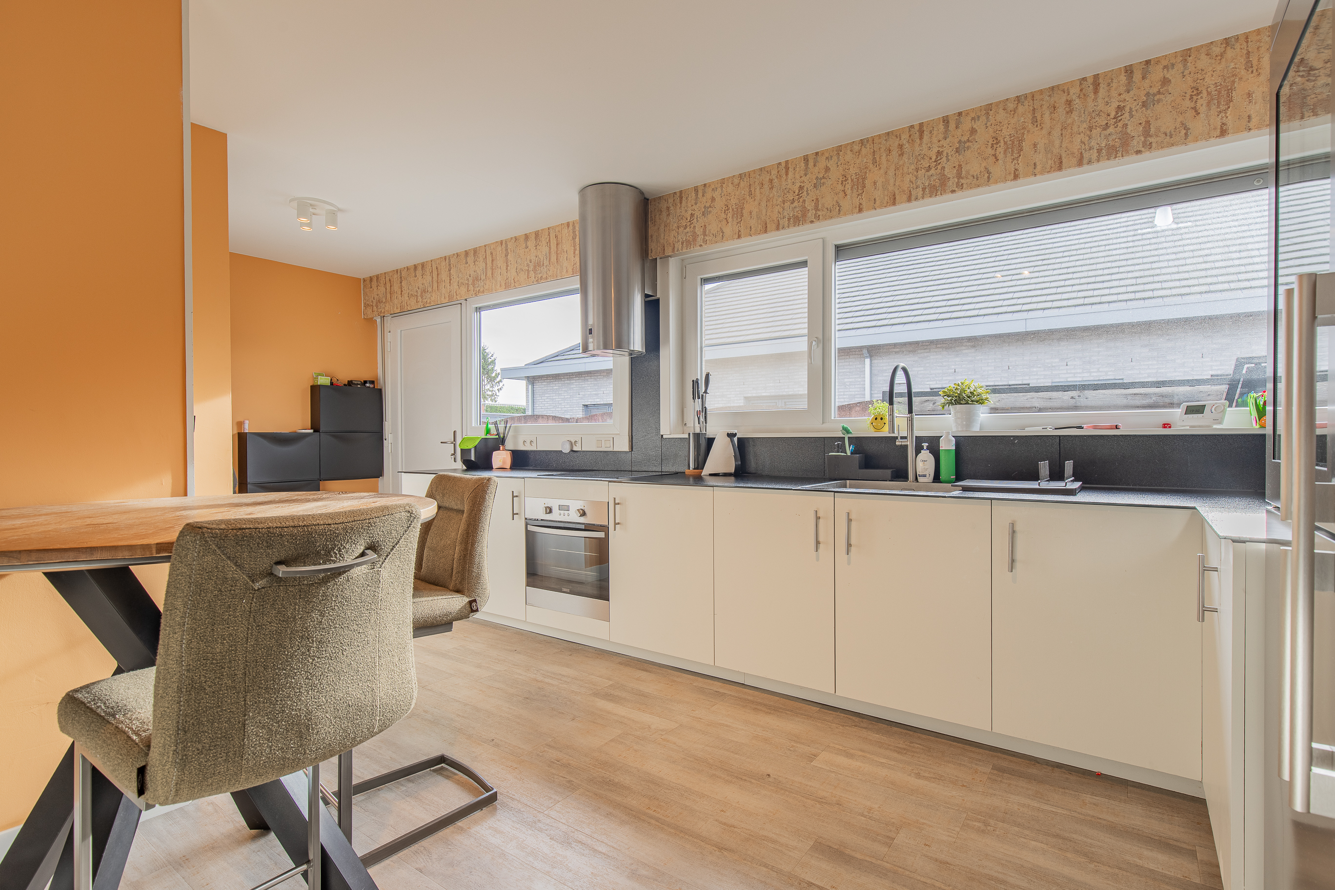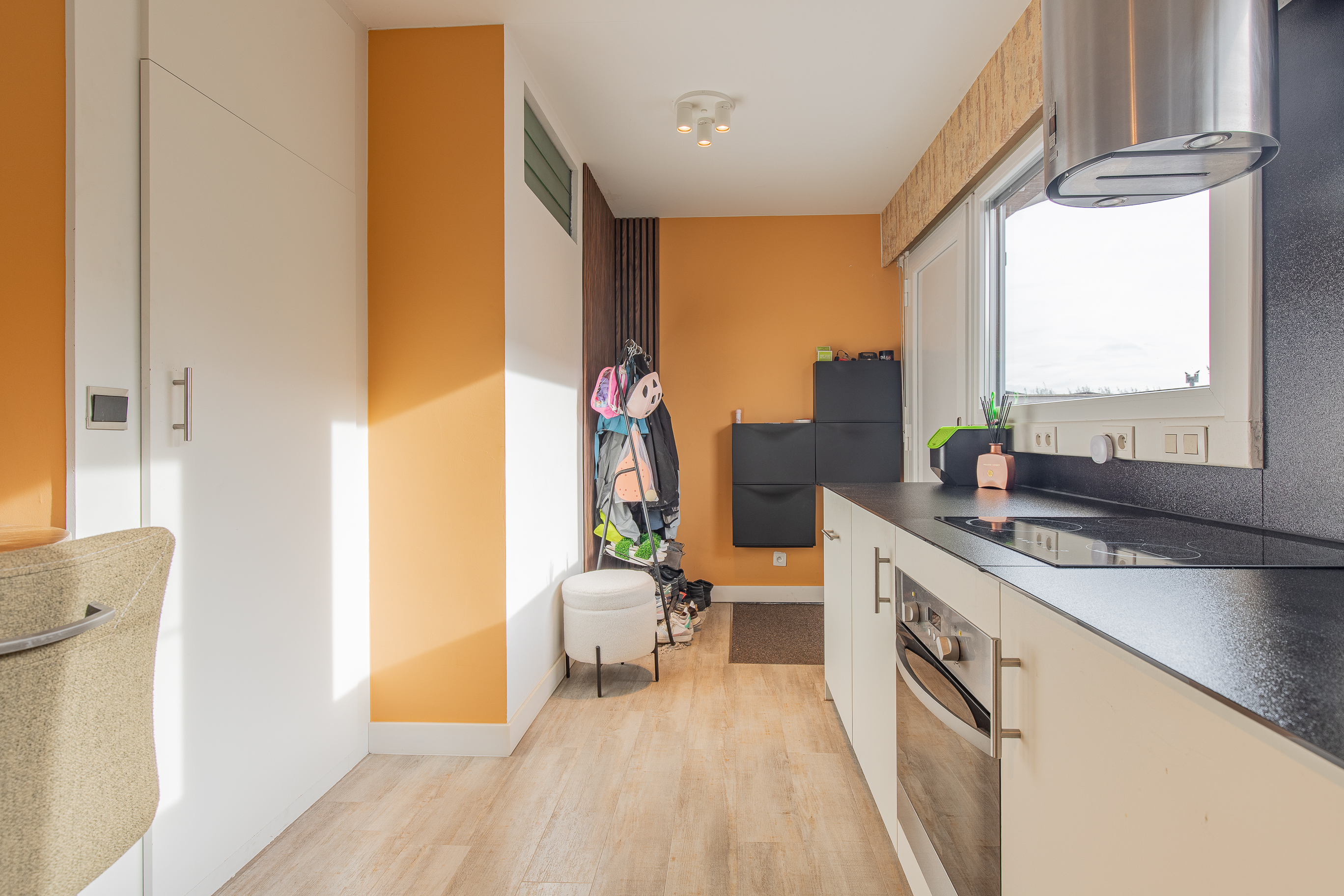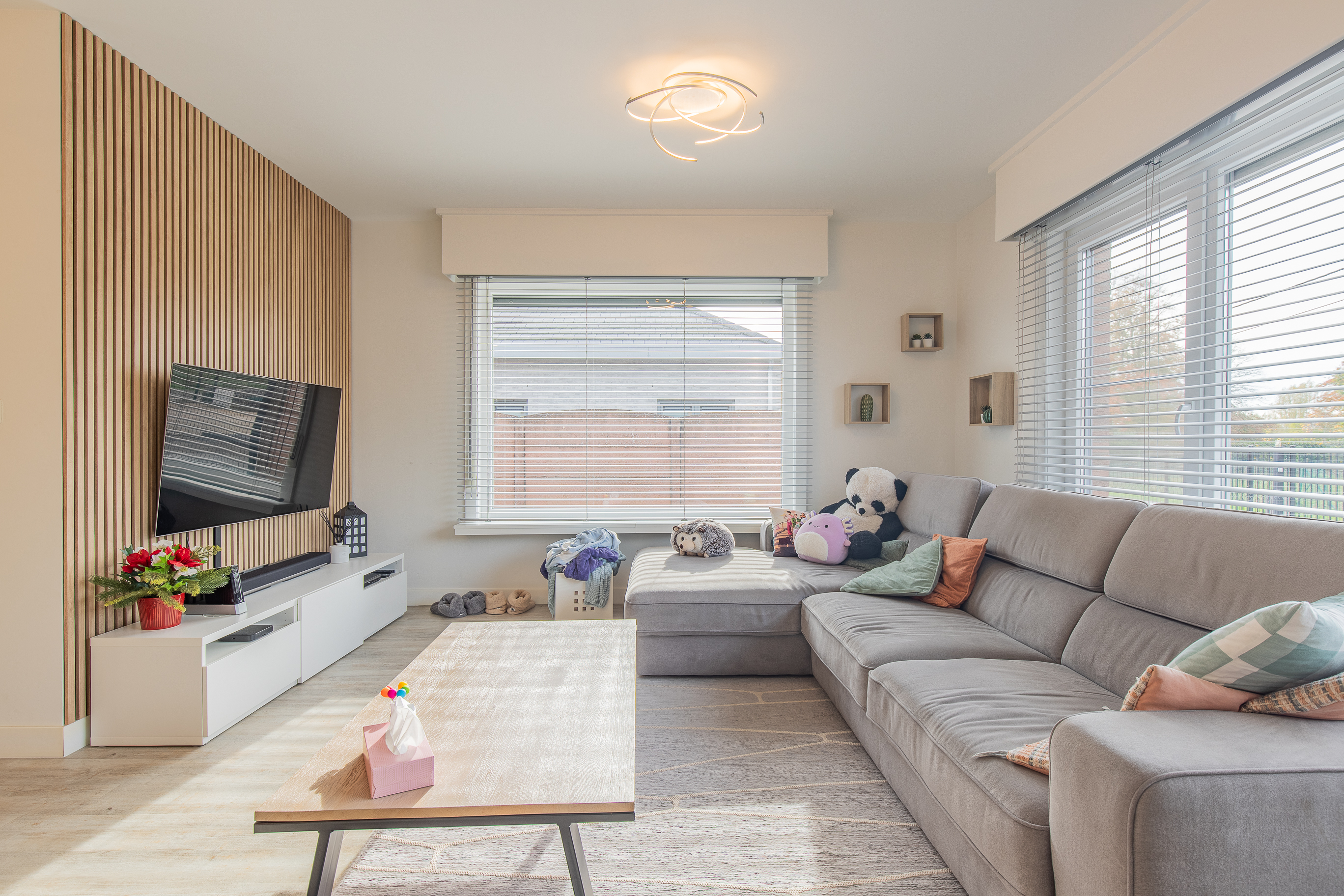 • Gezellige inkomhal met ruimte voor schoenen en een warme, lichtrijke leefruimte met grote ramen