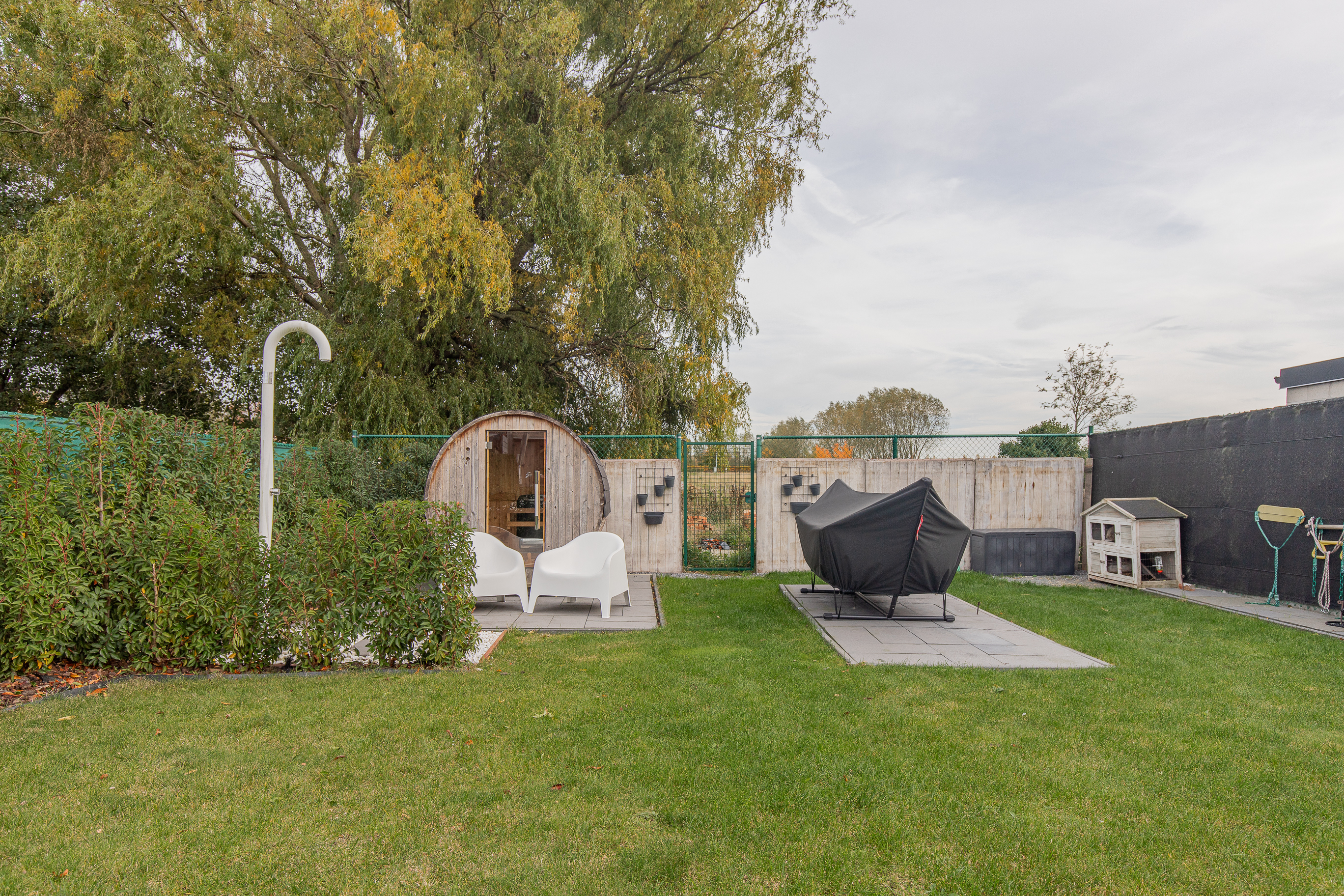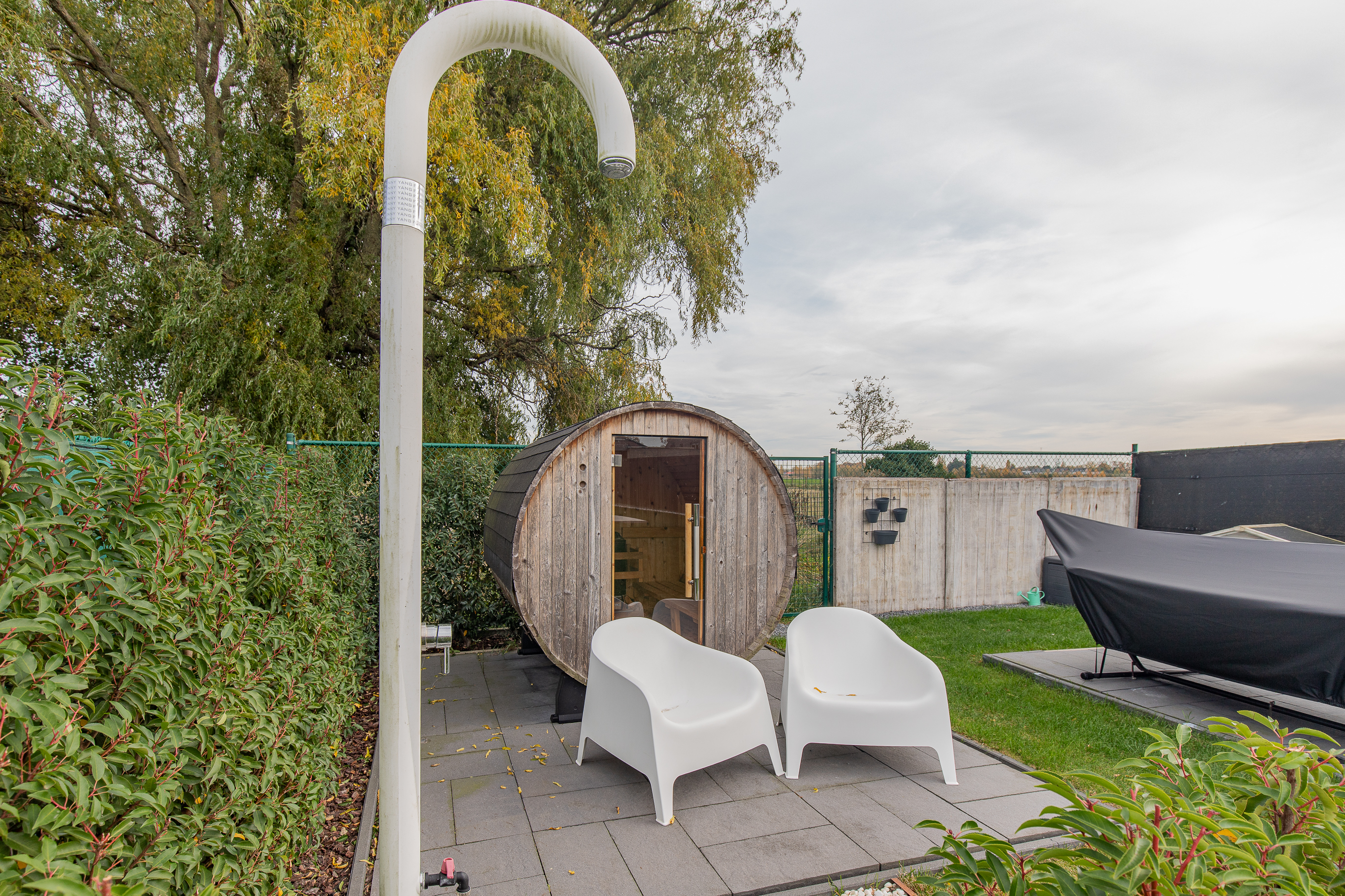 • Achteraan in de tuin: een sauna met douche voor ultieme wellness thuis
