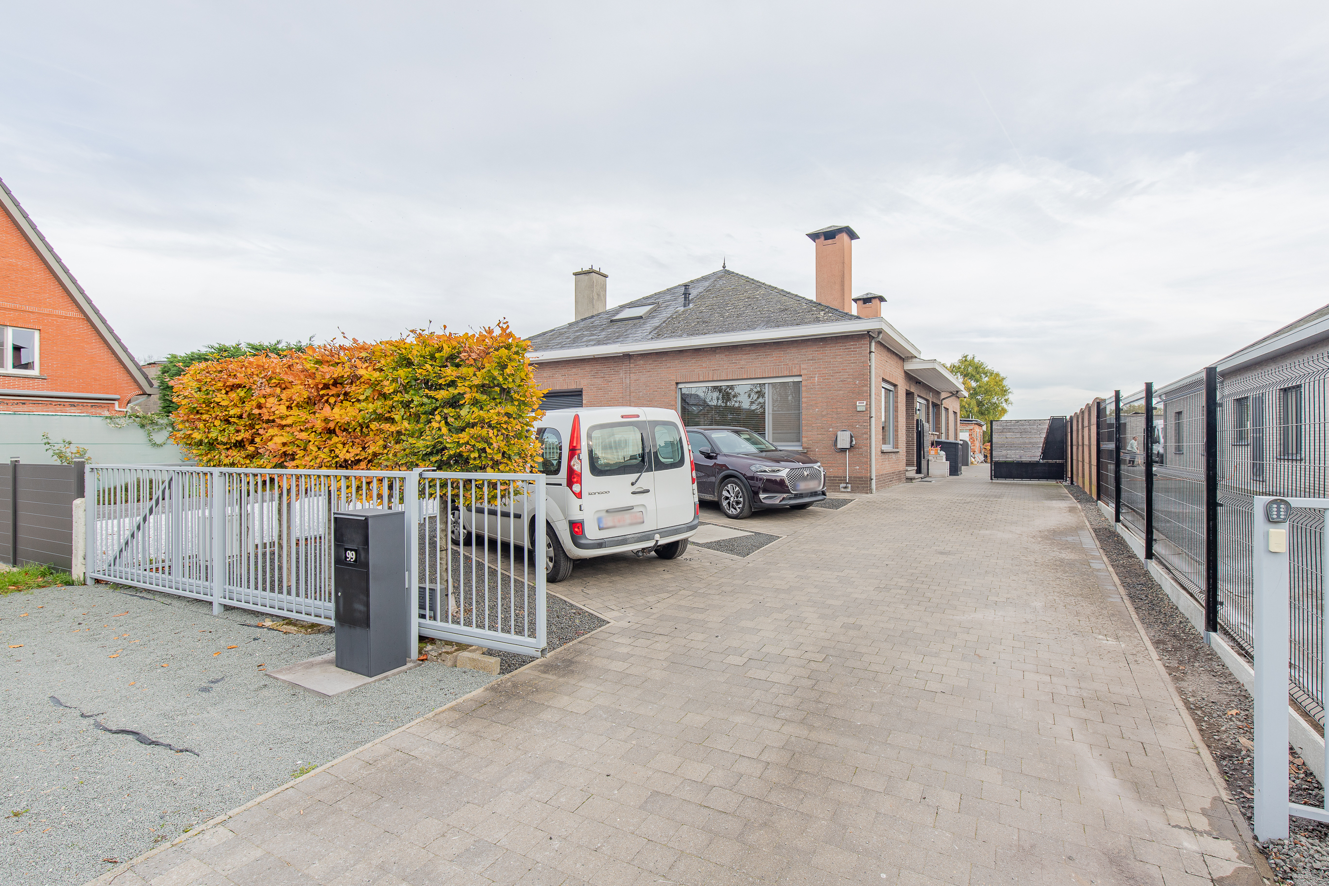 • Inkom met elektrische poort en oprit met 2 vergunde staanplaatsen